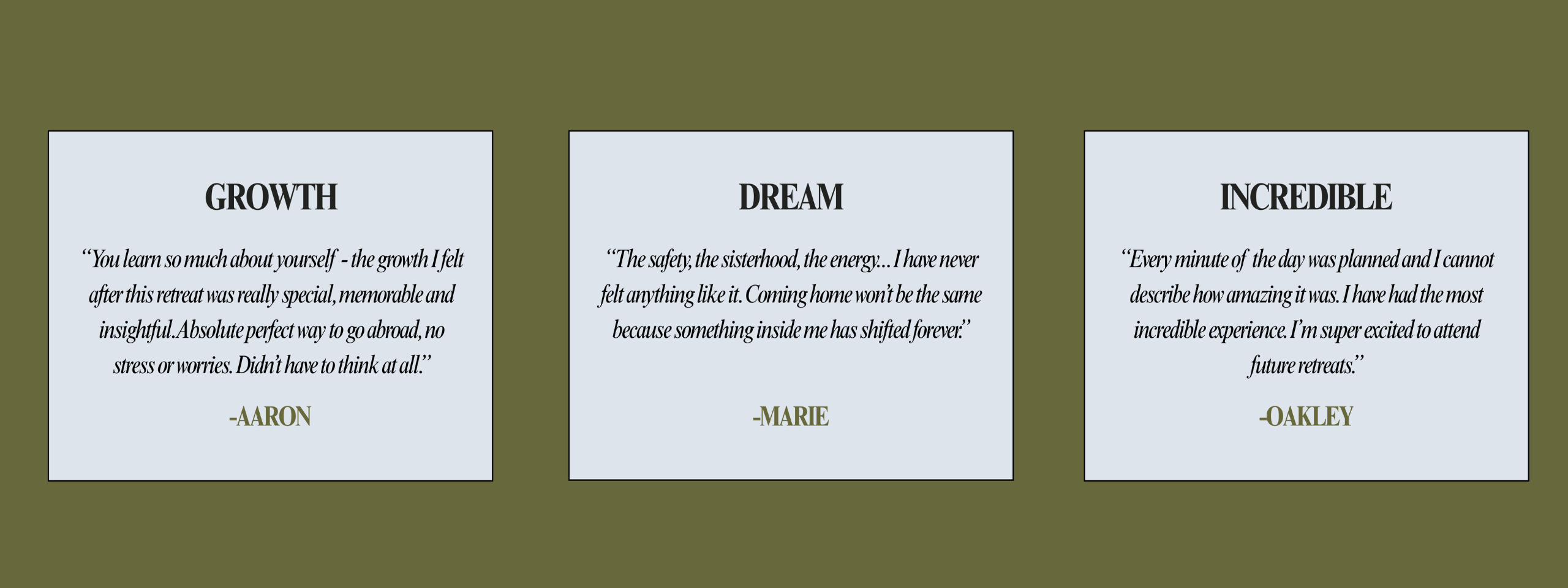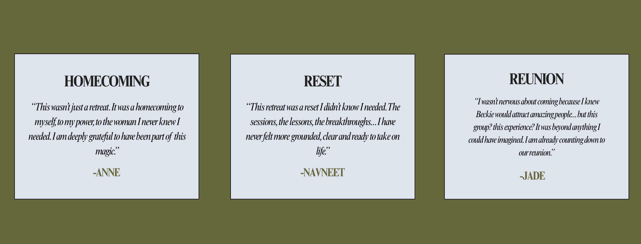This Retreat isn’t just a ‘trip away’—it’s a full-body remembrance of who you are when you stop playing small with people who encourage you to GO AFTER YOUR DREAMS and be UNAPOLOGETICALLY YOU every single day...